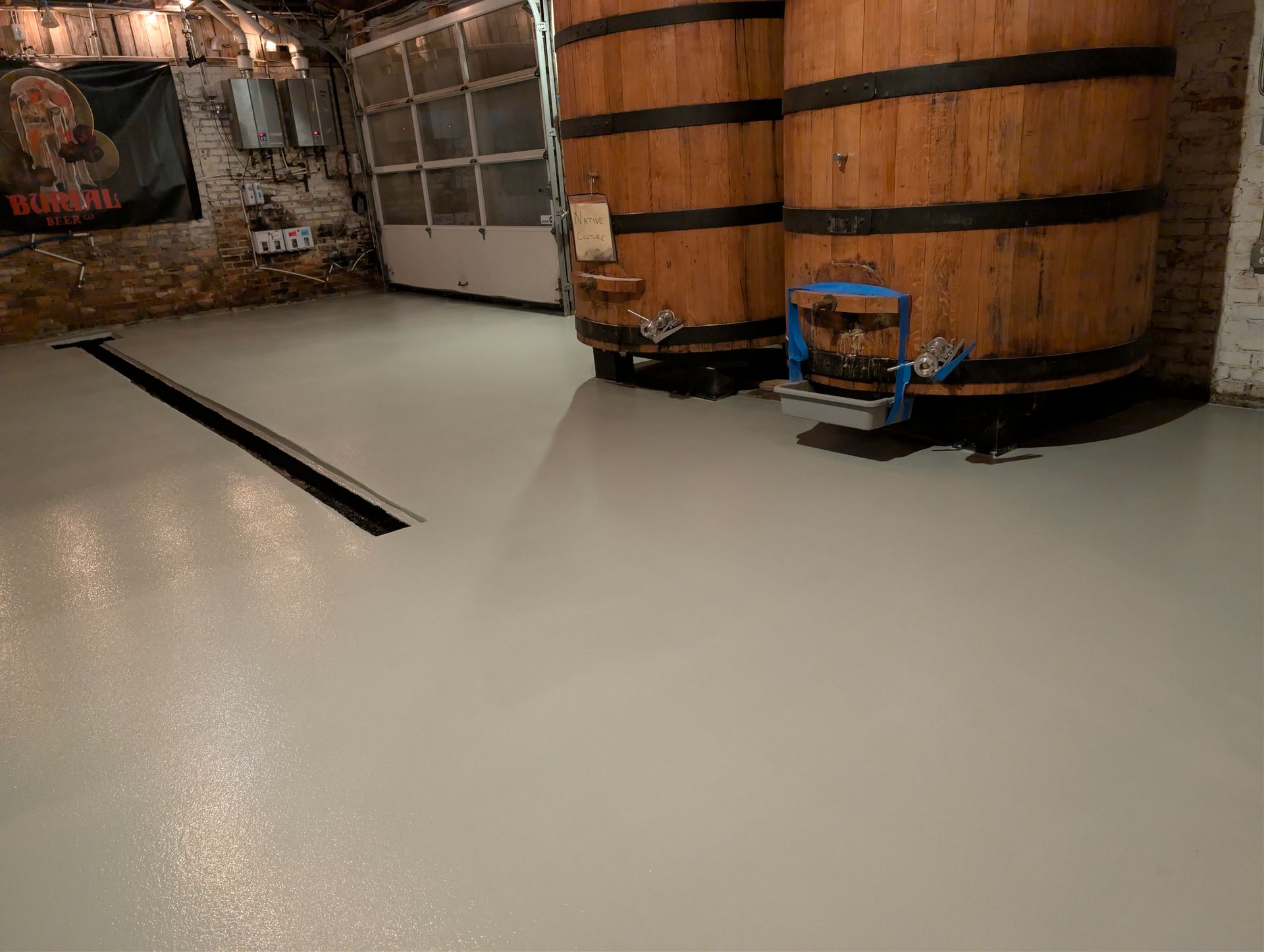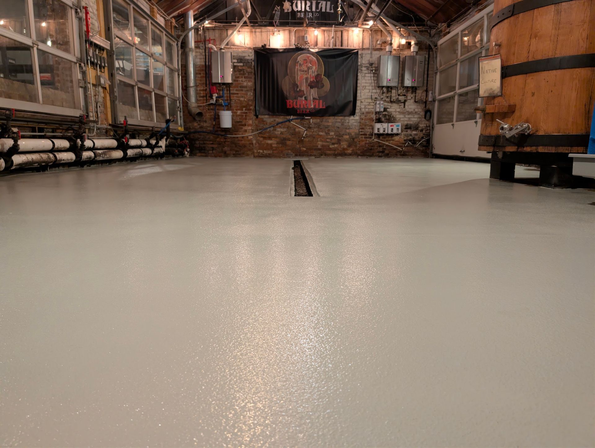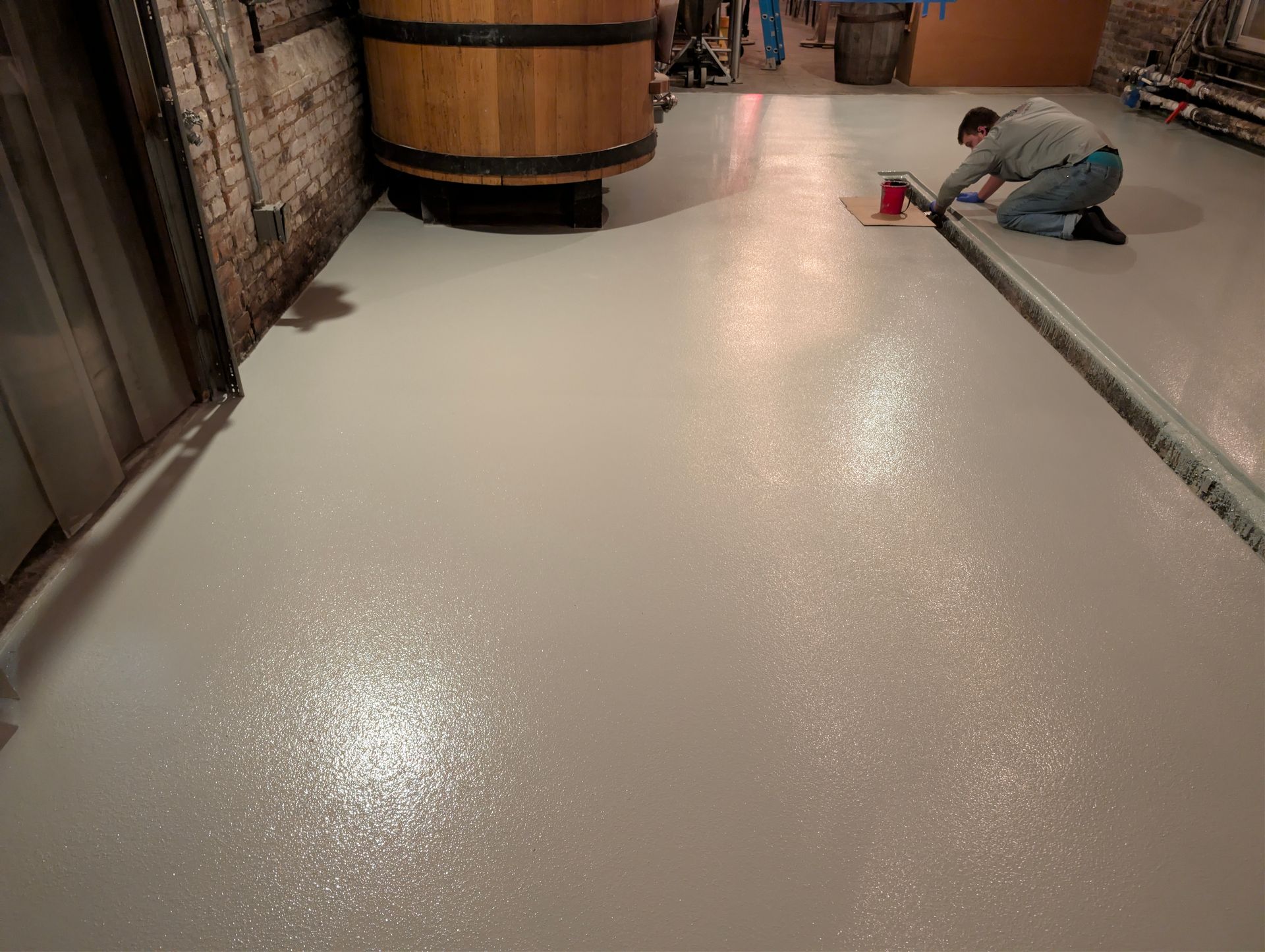 The finished system is seamless, sanitary, and built to withstand the constant foot traffic, equipment movement, moisture, and spills that come with brewery operations. This is the level of quality every commercial facility deserves.